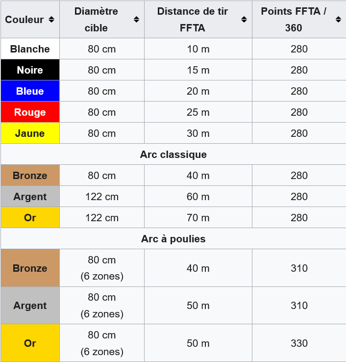 Pour mémoire, consultez le site de la FFTA :